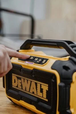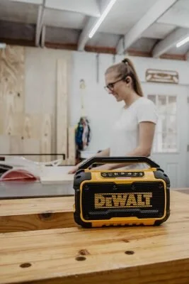 We love how the DEWALT 20-Volt MAX Bluetooth Speaker is cordless, so it runs off of a 20V battery. If you don't have a battery or you don't have a charged one at the moment, this does come with a power cord to plug into an outlet. So there really is no reason not to listen to your favorite music while you work! If you have never listened to music in the shop, TRY IT! 10/10 recommend this speaker to everyone!